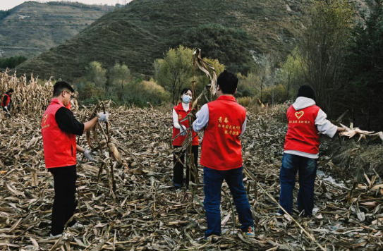 紅馬甲搶收“黃金穗” 涇源青年為幫扶村守好豐收糧