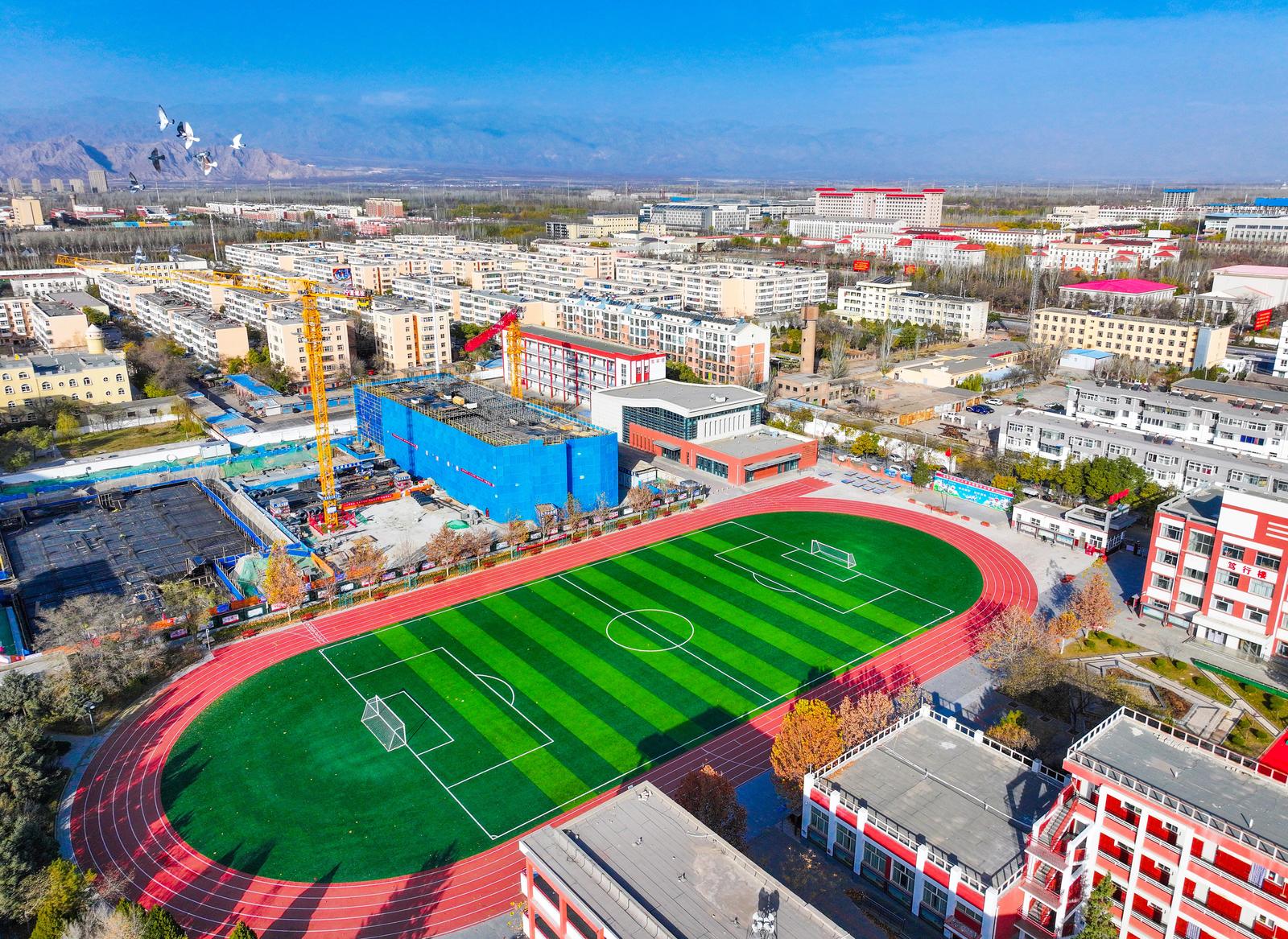 11月16日,銀川市第十八中學擴建項目施工現場,嶄新的教學樓拔地而起,項目規劃設置18個教學班,建成后新增900個學位,將有效緩解周邊適齡學生入學壓力。 記者 馬楠 攝