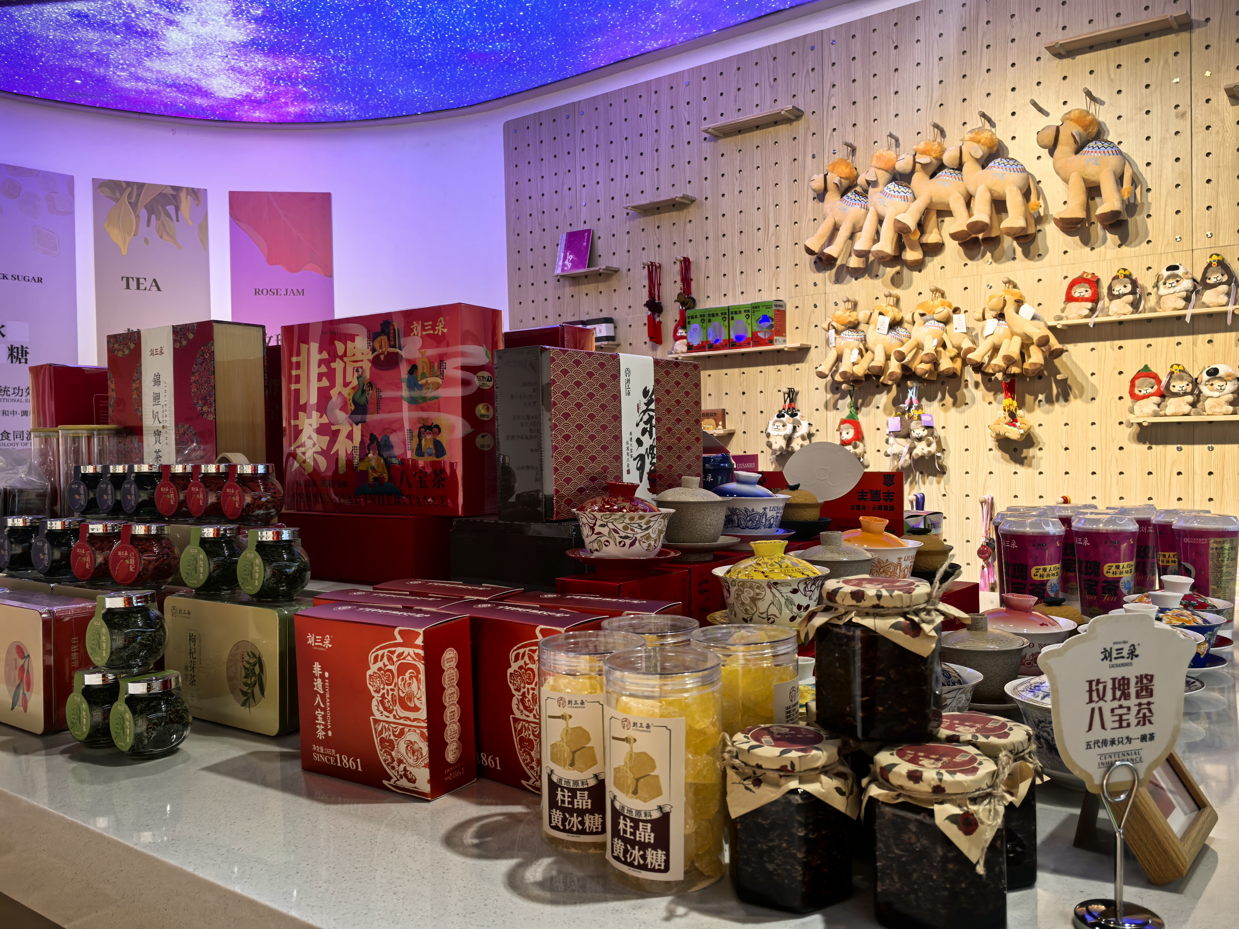 假日期間,許多游客在游覽西夏陵、沙湖、沙坡頭等知名景區(qū)后,會(huì)精心挑選具有文化內(nèi)涵的伴手禮。來(lái)自上海的李女士本來(lái)只想買點(diǎn)枸杞特產(chǎn),但在銀川一家文創(chuàng)店看中了一條妙音鳥(niǎo)絲巾,她買下來(lái)準(zhǔn)備送給母親作紀(jì)念。來(lái)自陜西的攝影愛(ài)好者王先生,選擇了“賀蘭山砂石畫(huà)香薰石”作為紀(jì)念。他說(shuō),“這塊石頭不僅是一件藝術(shù)品,還有淡淡的香味,能把賀蘭山的雄渾氣息帶回家。”在吳忠,體驗(yàn)過(guò)地道的手抓羊肉加八寶茶的搭配之后,杭州的劉先生下單了劉三朵八寶茶禮盒,他說(shuō):“方便沖泡,味道正宗,回去讓同事們也嘗嘗寧夏的甜茶。”