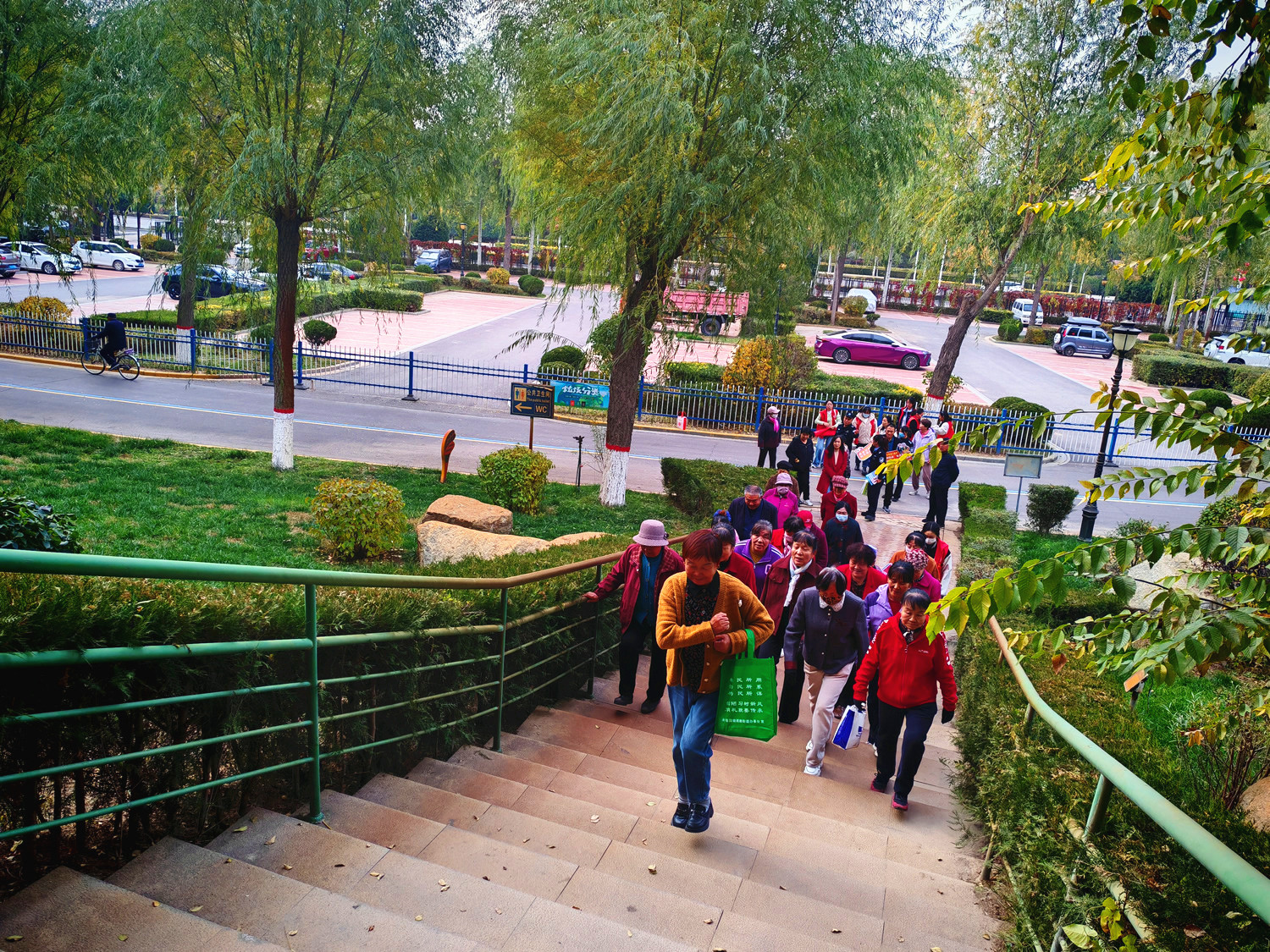 活動(dòng)在“登高賞秋”環(huán)節(jié)中拉開(kāi)序幕。老人們?cè)谥驹刚叩呐惆橄陆Y(jié)伴登山。《我和我的祖國(guó)》熟悉的旋律在山間回蕩,登頂后,大家圍坐涼亭,暢談縣城新貌,分享養(yǎng)生心得,歡聲笑語(yǔ)不絕于耳。