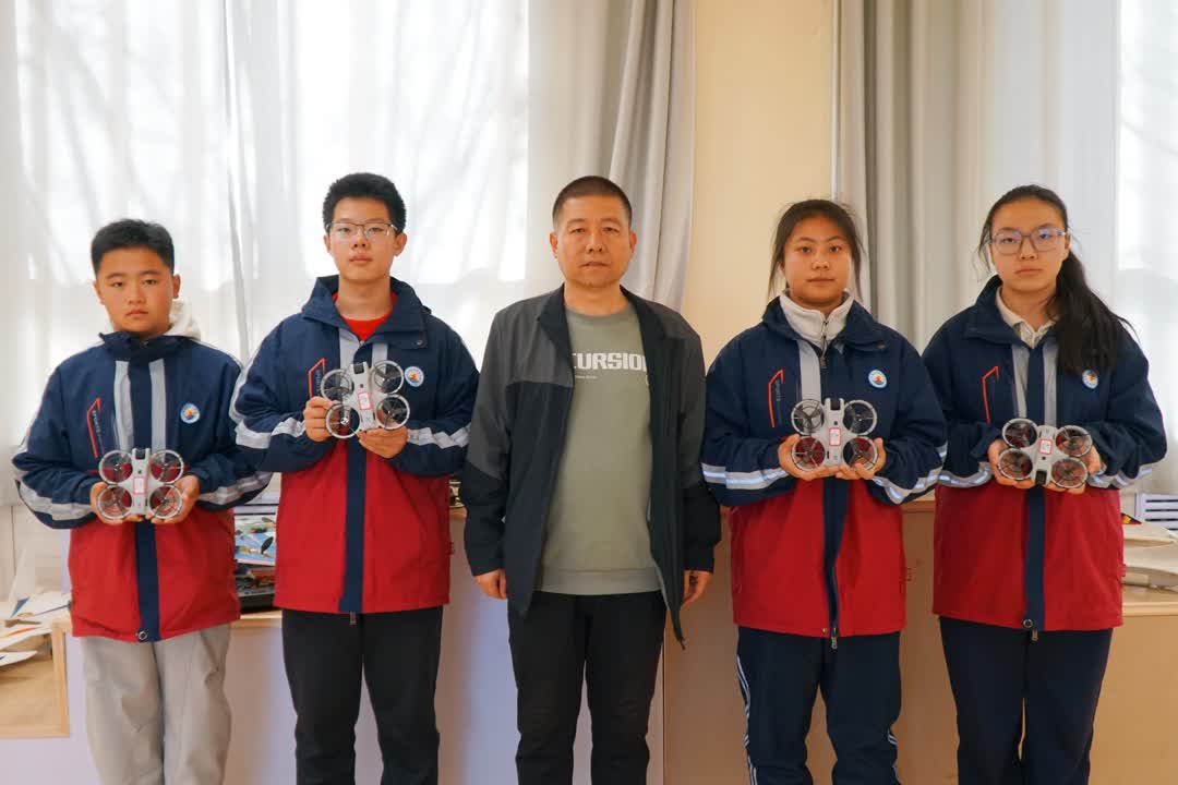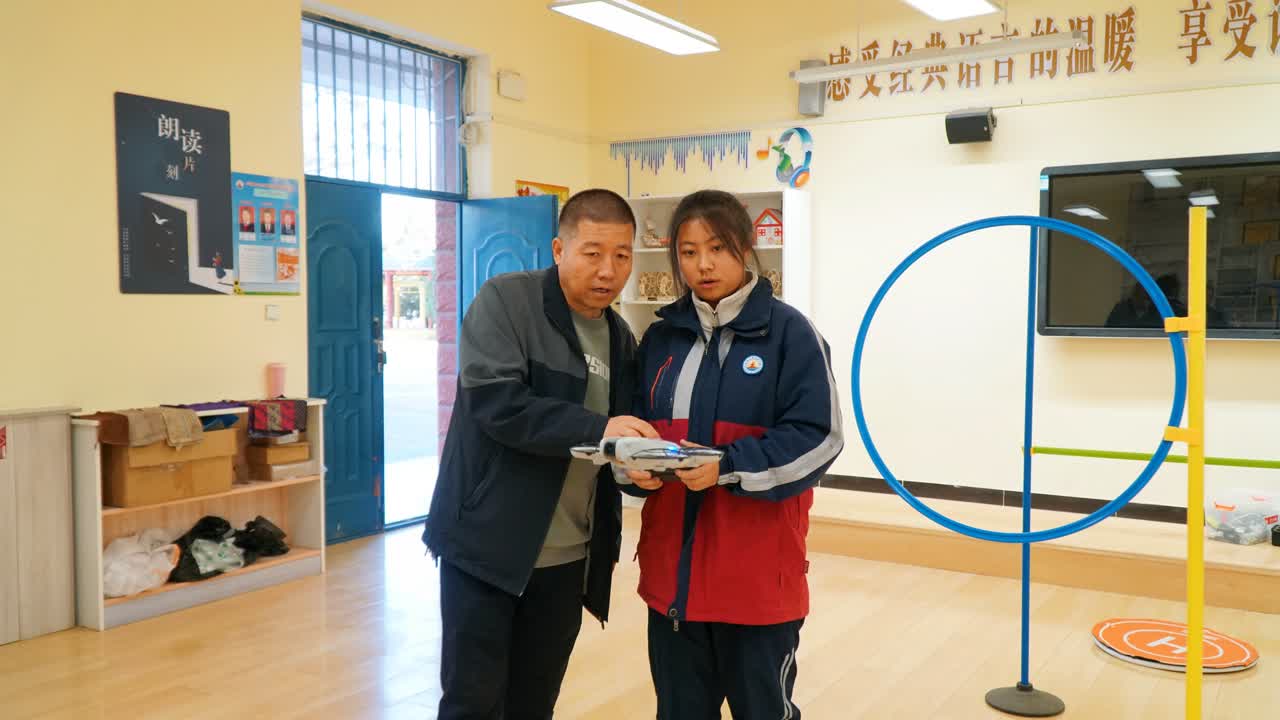 張斌老師指導(dǎo)學(xué)生飛無人機(jī)。