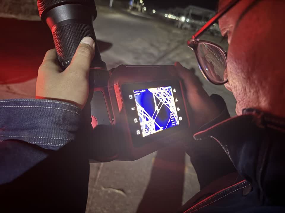 19時47分,運維人員抵達現場后迅速兵分兩路投入作業,一方面運用手持紅外測溫設備對線路設備進行精準測溫,另一方面操控無人機開展空中紅外檢測與地面人工外觀檢查。然而,經過多輪細致檢查和檢測,設備各項數據均顯示正常,但現場持續傳來明顯的放電聲音,放電原因始終無法鎖定。寧夏送變電公司立即將現場勘察情況、檢測數據同步上報資產單位中衛公司,即便多位經驗豐富的運維管理人員與資深老線路工共同研判,仍未能明確放電具體成因,這一疑難雜癥給處置工作帶來了不小挑戰。為進一步精準定位問題,寧夏送變電公司應急搶修中心迅速聯動該公司變電施工二分公司,緊急借用中寧換流站專業紫外成像儀,憑借該設備在放電檢測領域的精準識別優勢,為后續排查工作筑牢技術支撐。
