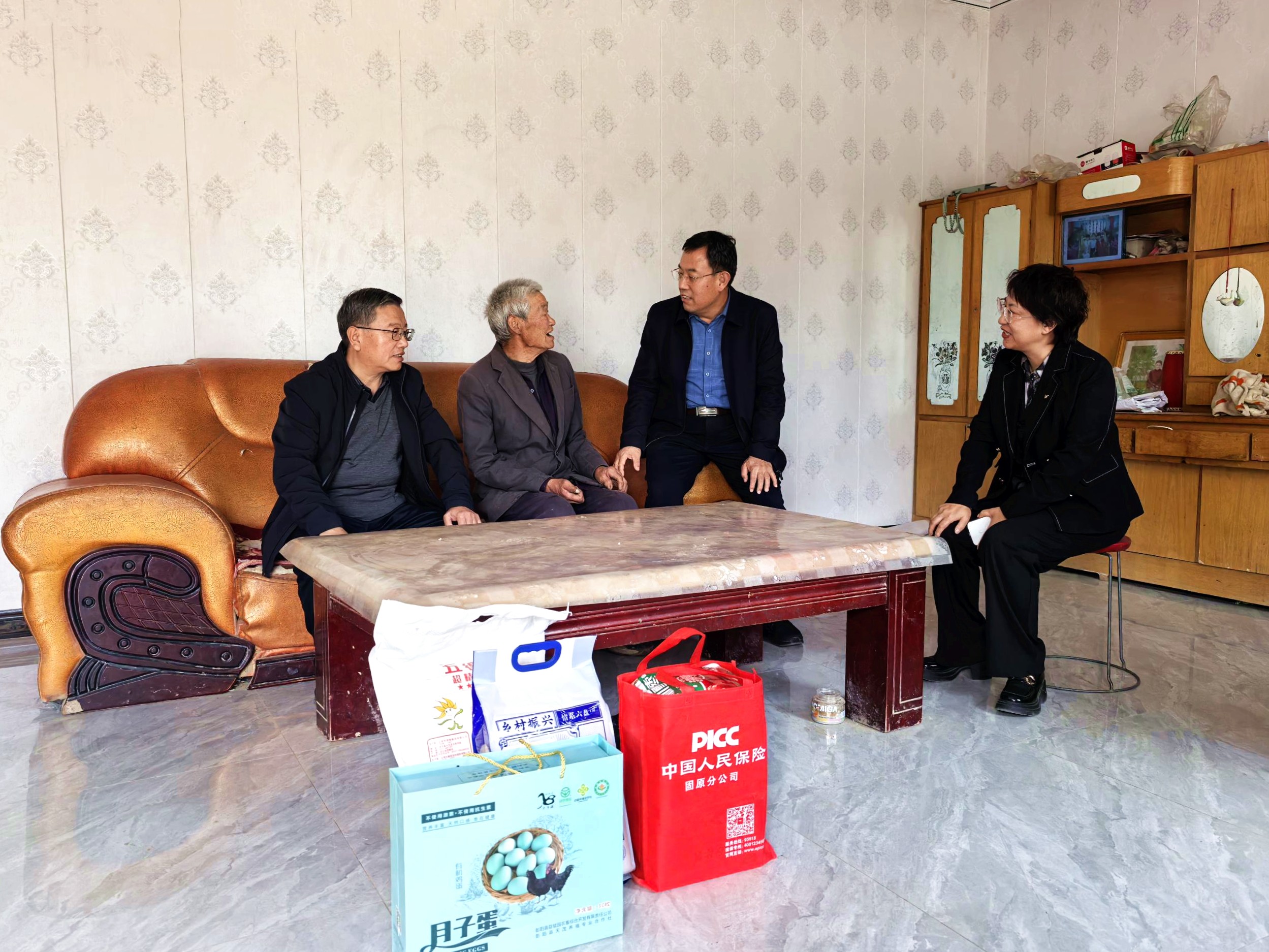 各縣(區)支公司積極聯動地方政府及村社組織,開展形式多樣的慰問活動,將關懷送到老年群體身邊。賀蘭支公司黨支部聯合縣鄉村振興服務中心,深入金貴鎮、洪廣鎮多個鄉村,走訪慰問老年群眾,送去米、面、油等生活物資,并與老人親切交流,普及意外險、健康險等實用保險知識。彭陽支公司積極參與縣民政局、慈善總會聯合開展的敬老月活動,走進12個鄉鎮,為100名困難老人送去大米、面粉、雞蛋等慰問品,以實實在在的物資幫扶溫暖人心。