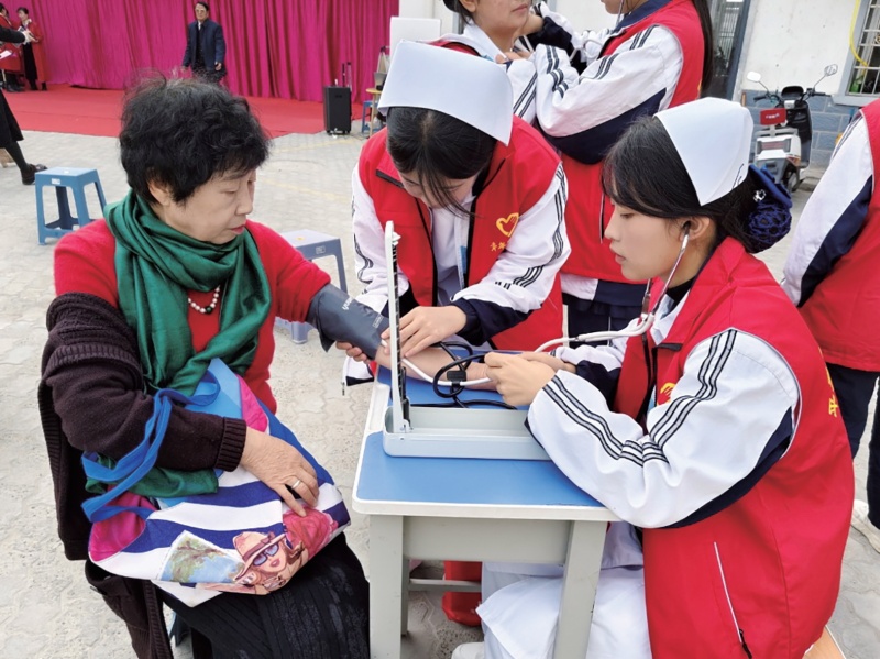 近日,城關鎮(zhèn)飲馬湖社區(qū)聯(lián)合平羅縣職教中心開展“睦鄰同心聚溫情”校社聯(lián)動活動?;顒又校鐓^(qū)衛(wèi)生服務站工作人員與職教中心護理系學生組成醫(yī)療團隊,為社區(qū)老年人提供血壓血糖測量、慢性病咨詢解答、用藥指導等服務,為老年人解答關于秋冬季節(jié)養(yǎng)生、常見疾病預防等問題。記者 桑娜 攝