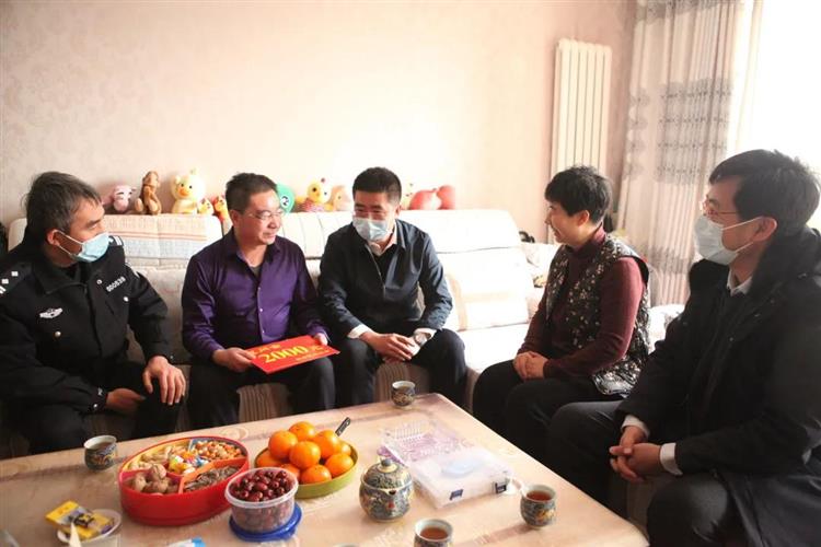 當日下午,自治區總工會和公安廳慰問組深入中寧縣對因公犧牲民警家屬代表和因公傷殘民警代表進行了入戶慰問。慰問組一行首先來到因公犧牲民警張建平家中。張建平同志2006年因公負傷,造成永久性創傷,被診斷為左腎動靜脈(畸形)瘺、慢性腎功能衰竭、腎損傷性高血壓,被評定為四級傷殘,長期服藥治療。十一中秋假期,張建平仍堅持在崗值班,10月8日下午3時,突發腦溢血,送往寧夏醫科大學總醫院搶救,10月10日上午8時救治無效去世。張建平的一生留下了金燦燦的足跡,曾榮獲“全國先進工作者” “全國特級優秀人民警察” “寧夏50年政法英模”等榮譽稱號,“全國道德模范提名獎” “全國我最喜愛的人民警察提名獎”,記個人一等功一次等多項殊榮。慰問組一行與其家屬親切交談,詳細詢問了家屬工作、生活、健康狀況等情況,慰問組叮囑家屬一定要保持良好心態,照顧好家庭,把子女撫養成才,工會組織會時刻關心她們,盡最大努力幫助解決實際困難。