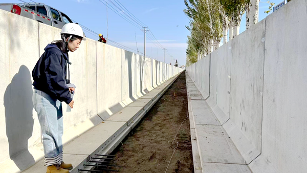 在暖泉渠施工現(xiàn)場,不見傳統(tǒng)工地支模澆筑的泥濘與忙亂,只見大型吊車將規(guī)整劃一的L型混凝土構件輕巧地吊裝到位,工人們隨后進行精準拼接,工序流暢,現(xiàn)場整潔?!澳憧?,渠邊這些樹都不用砍伐了。”寧夏水利工程建設中心規(guī)劃計劃科工作人員鄒璇指著渠邊胸徑20厘米的楊樹介紹,這個“新神器”的應用,實現(xiàn)了工程建設與生態(tài)保護、資源節(jié)約的協(xié)同。它通過工廠化預制,從源頭上確保了混凝土強度和外型精度,工程質量遠勝傳統(tǒng)手工現(xiàn)澆,渠道壽命大幅提高,運行維護費用降低;構件提前預制、現(xiàn)場拼裝,保護渠畔林木,更是將現(xiàn)場工期壓縮了約一半,極大緩解了施工組織壓力。