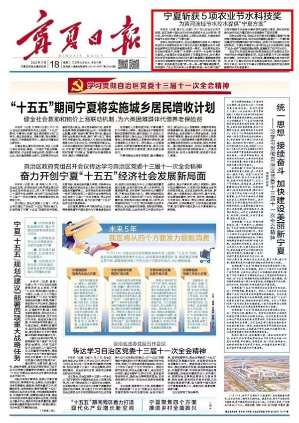 寧夏斬獲5項(xiàng)農(nóng)業(yè)節(jié)水科技獎(jiǎng) 為全國節(jié)水治水提供“寧夏方案”