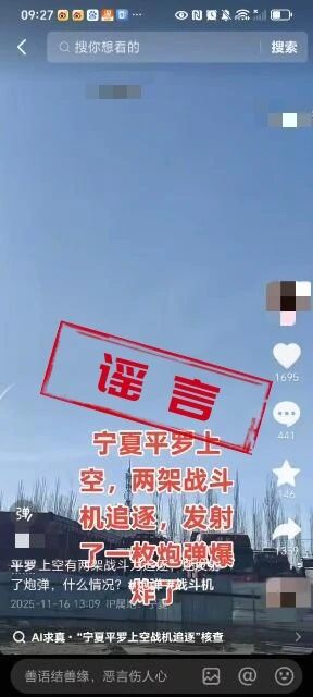 11月16日,家住平羅縣的劉某某偶然發現天上飛過兩架飛機,隨即用手機拍攝視頻并發布至某視頻平臺,還編造“平羅上空出現兩架戰斗機追逐并發射一枚炮彈”的虛假配文。該視頻發布后迅速傳播,短短一天內瀏覽量高達42萬次,相關謠言信息同步在多個社交平臺擴散,引發大量網民關注,造成轄區部分居民恐慌,嚴重擾亂了社會公眾秩序。平羅縣公安局網安大隊在網絡巡查工作中及時發現該虛假信息,第一時間啟動核查處置程序,聯合城關南街派出所將散播謠言的劉某某抓獲。