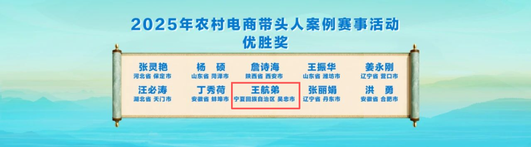 與此同時,紅寺堡區的王航弟也成功斬獲2025年農村電商帶頭人案例賽事活動優勝獎。